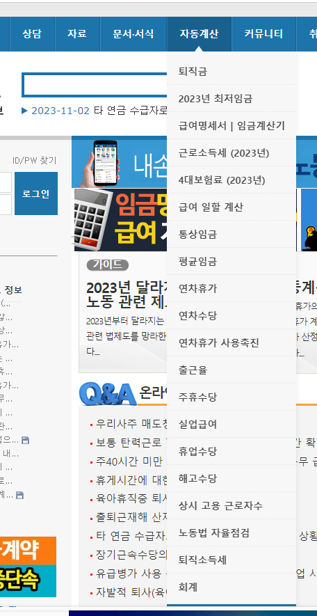 계산 카테고리에서 연차 수당을 클릭합니다.